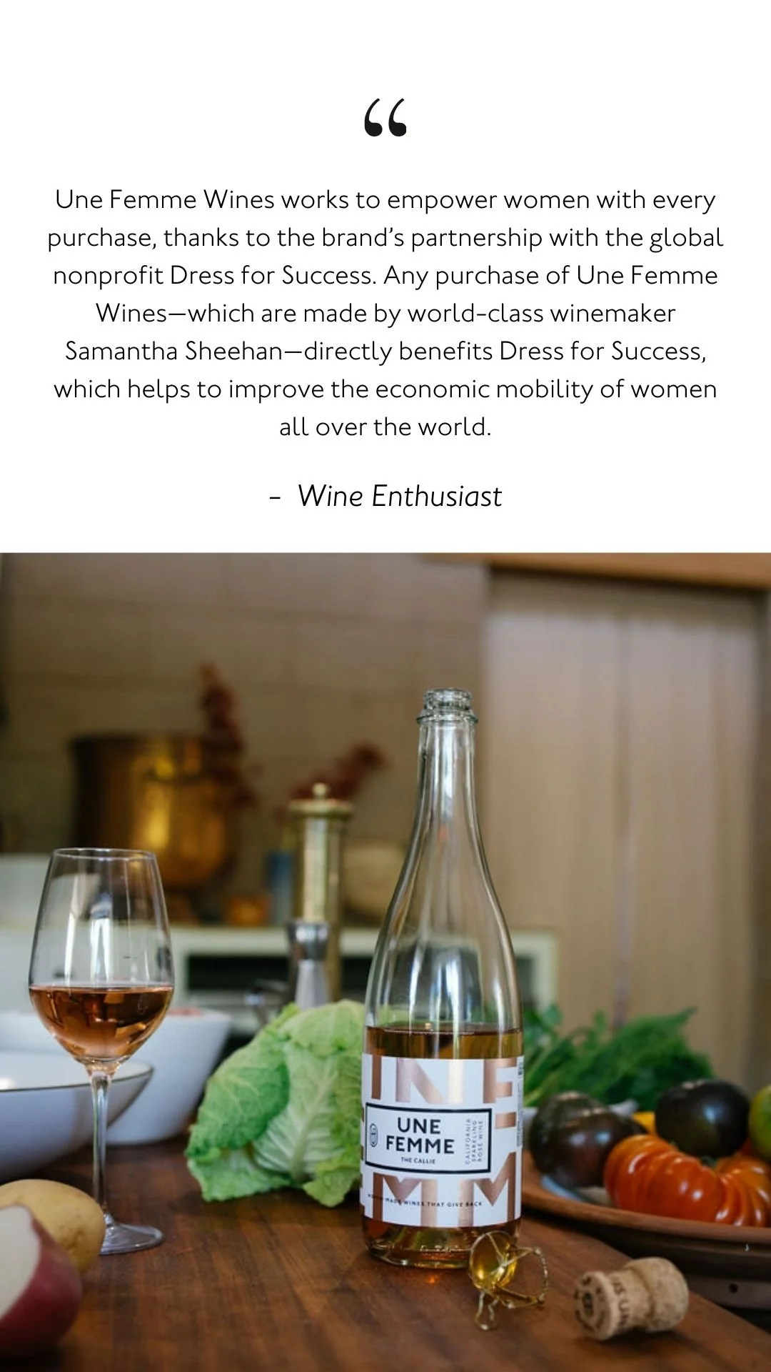 Une Femme Wines is a modern sparkling wine brand made by women, for women. With every bottle, they celebrate female winemakers and support women-centered charities—raising a glass to community, impact, and everyday elegance.